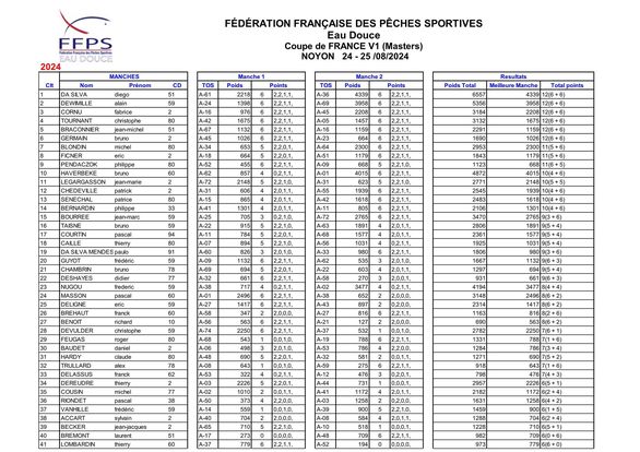 24 et 25 Août 2024 : Coupe de France Vétérans à Noyon (60) – V1 Résultats Résultats suite . V2 Résultats Résultats suite .
